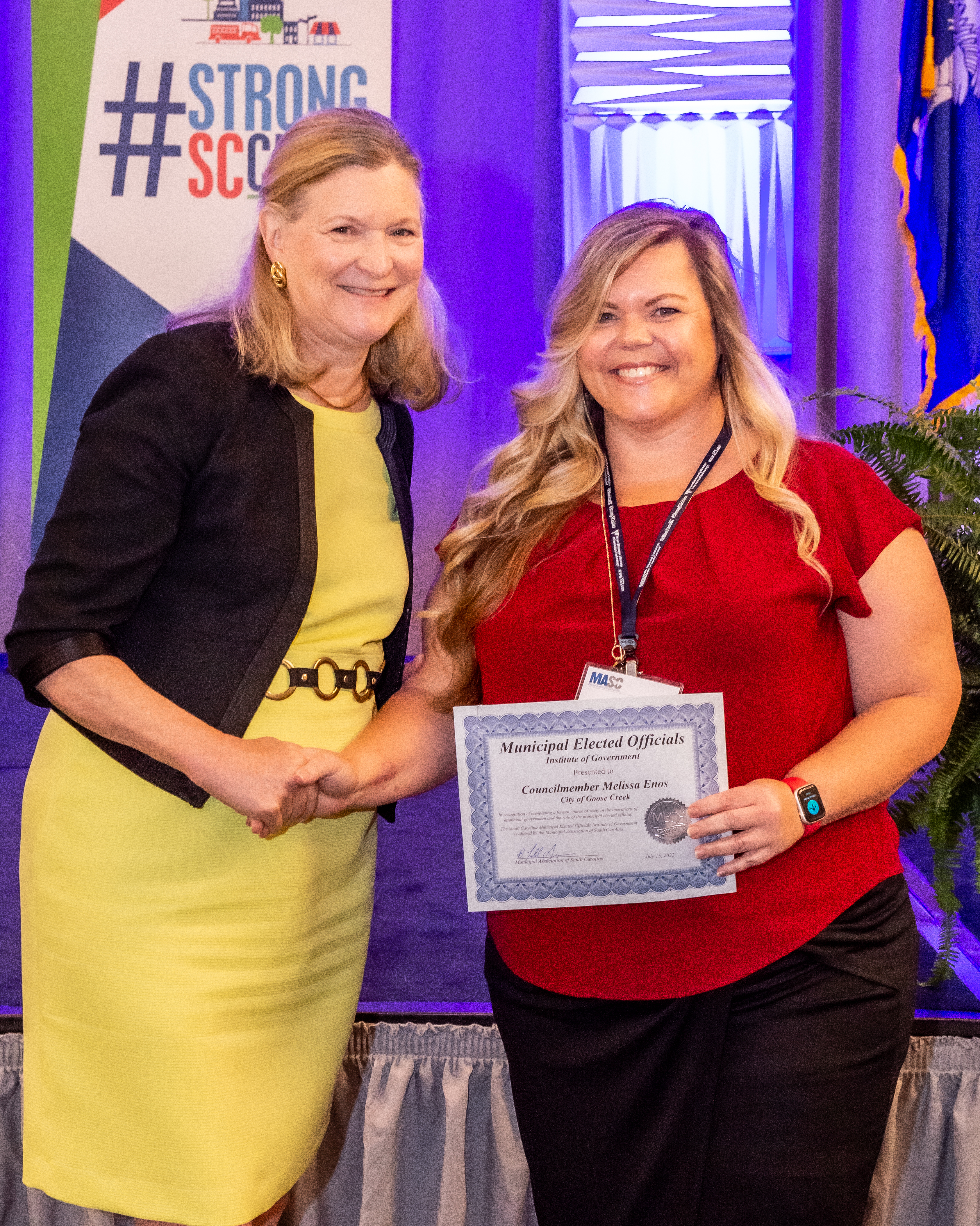 Councilmember Melissa Enos from the City of Goose Creek graduated from the Municipal Elected Officials Institute of Government. Graduates received their certificates during the Municipal Association of South Carolina’s Annual Meeting in July.