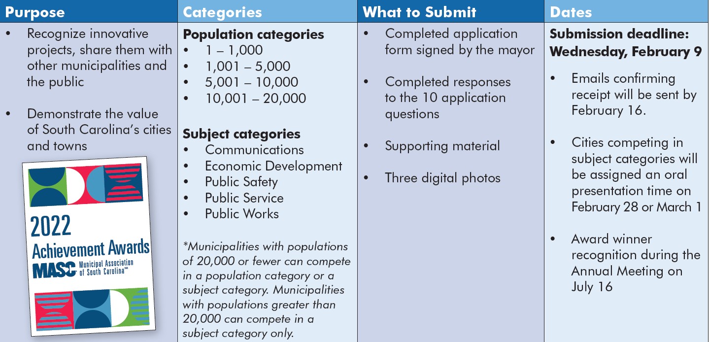 Submissions for the 2022 Achievement Awards are due by February 9. Find the application and more information online.