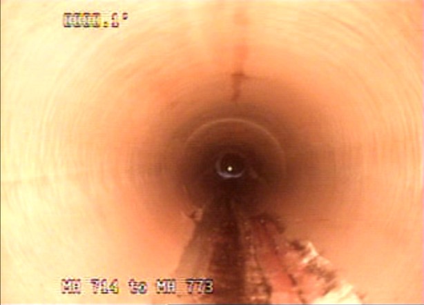 An "in-pipe" view of a drainage pipe from clogged to cleared.