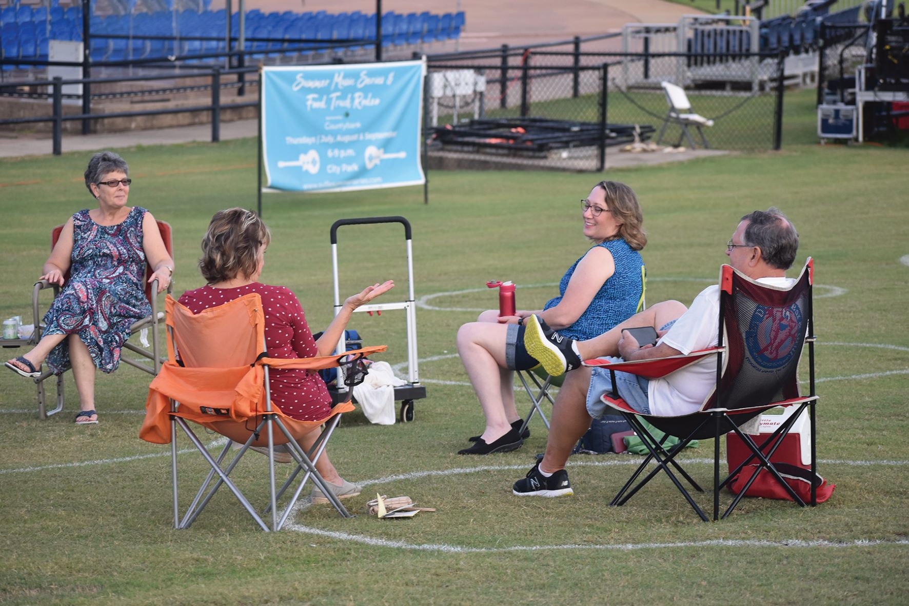 In Simpsonville, the city moved its 2020 summer music and food truck rodeo from its accustomed small pavilion to the much larger lawn of the Heritage Park Amphitheater, limiting crowds and requiring social distancing.