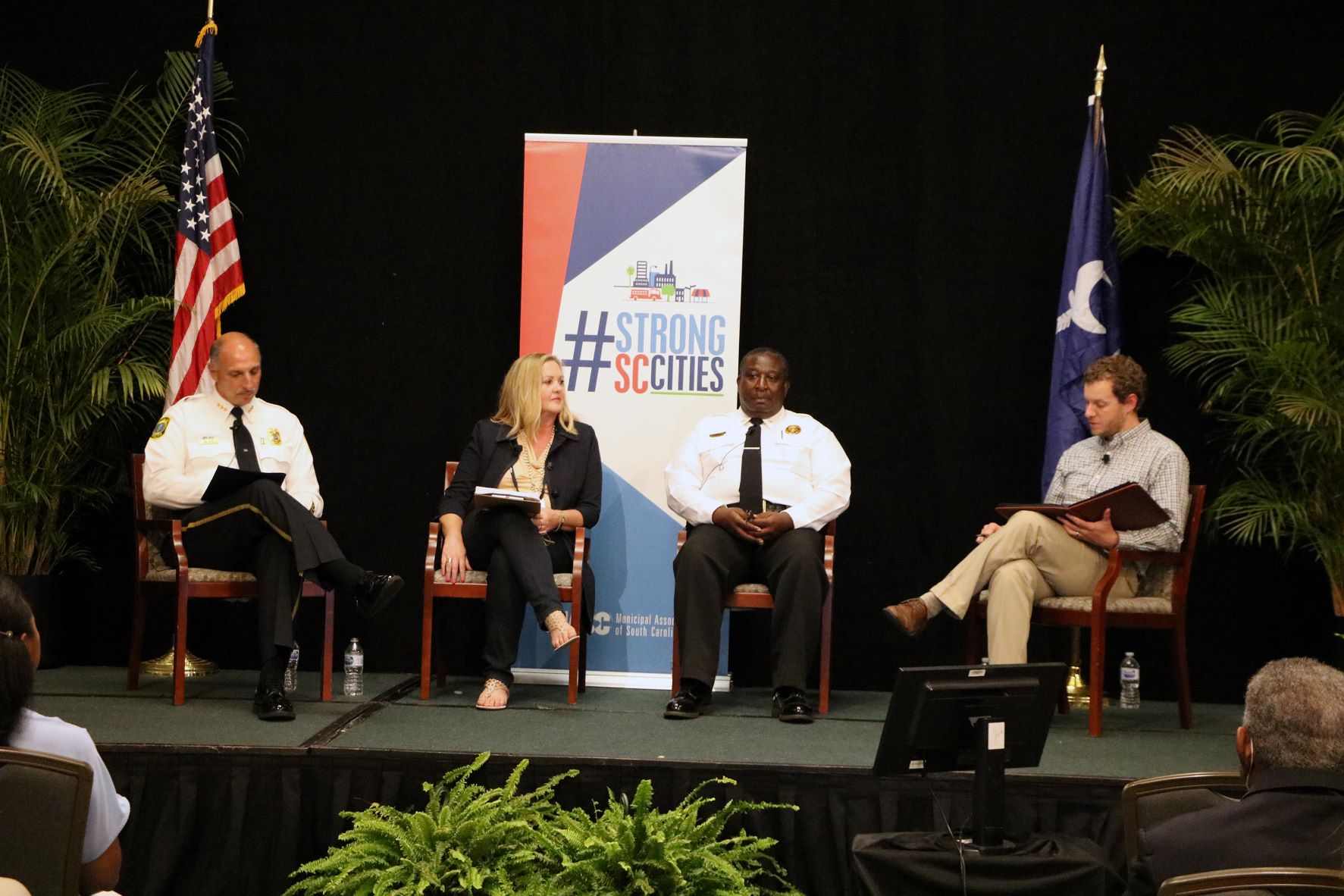 From left: Columbia Police Chief Skip Holbrook, Bluffton Public Information Officer Debbie Szpanka, Williamston Police Chief Tony Taylor and North Charleston Public Relations and
