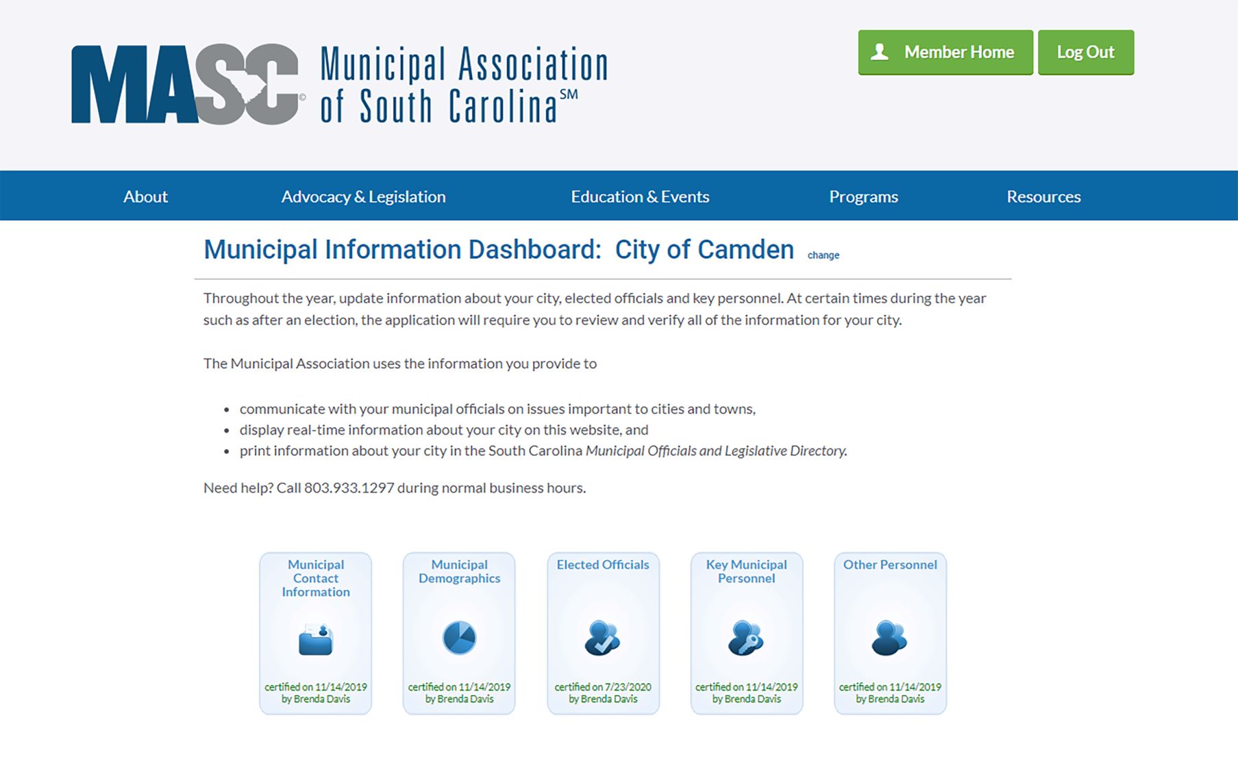 For assistance, or to make a new designation for the person to handle the update, contact Joanna Ayers at jayers@masc.sc or 803.933.1259.