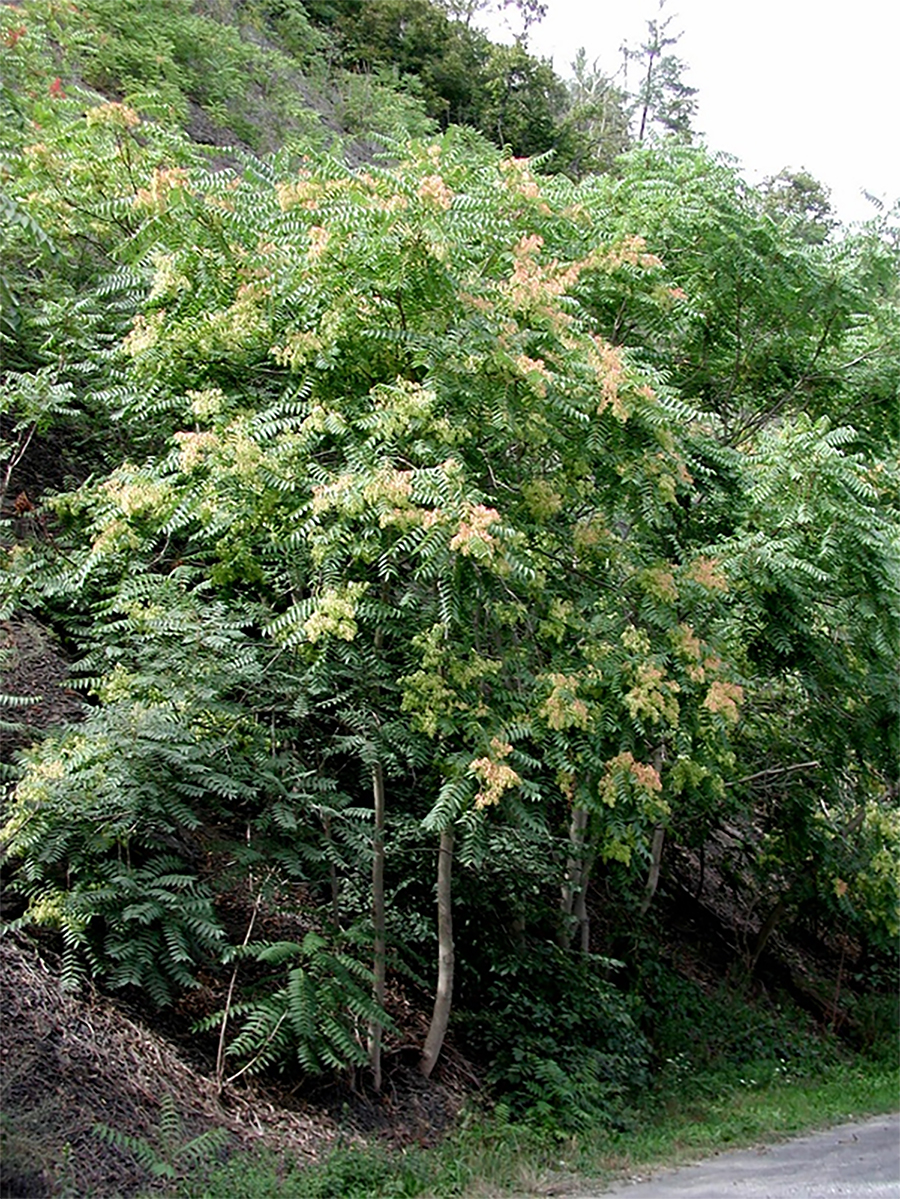 The Tree-of-Heaven is a preferred host for the Spotted Lanternfly, an invasive insect that