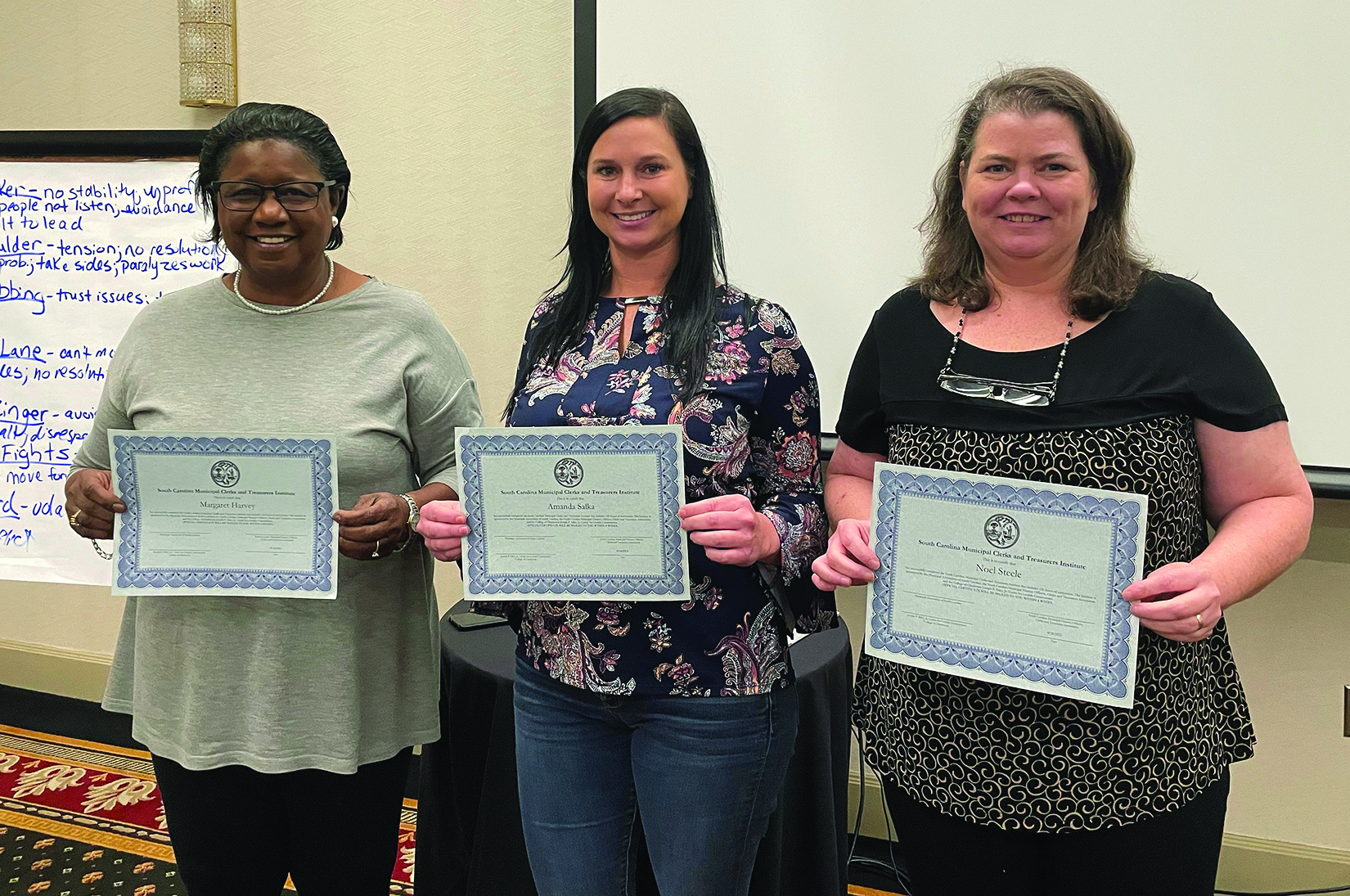 The newest graduates are Margaret Harvey, clerk/treasurer, Town of Swansea; Amanda Salka, town administrator, Town of Summerton; and Noel Steele, water clerk, Town of Ridge Spring.