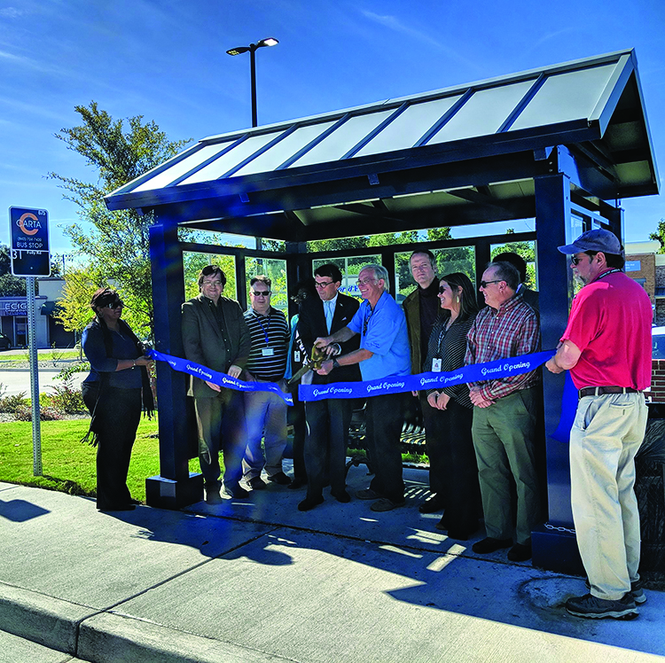 Officials cut the ribbon on a Folly Road bus stop. Folly Road is home to a